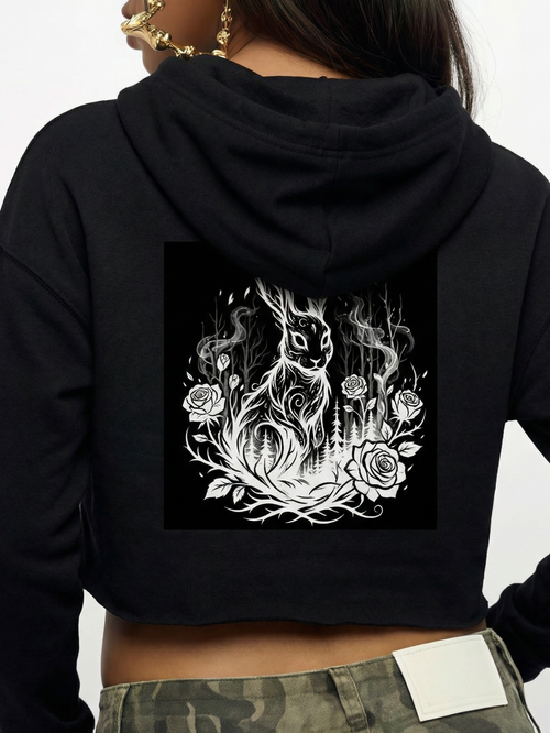 Black Rabbit Lightweight Crop Hoodie